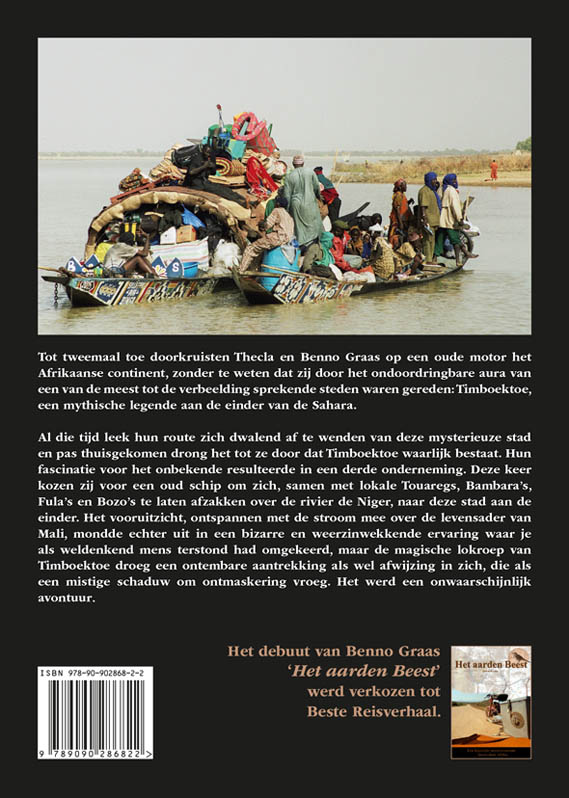 Hun fascinatie voor het onbekende resulteerde in een derde onderneming. Dit maal kozen zij voor een oud schip om zich, samen met lokale Touaregs, Bambara's, Fula's en Bozo's te laten afzakken over de rivier de Niger, naar deze stad aan de einder. Het vooruitzicht, ontspannen met de stroom mee te varen over de levensader van Mali, mondde echter uit in een bizarre en weerzinwekkende ervaring, waarbij je als weldenkend mens terstond had omgekeerd! Maar de magische lokroep van Timboektoe droeg een ontembare aantrekking als wel afwijzing in zich, die als een mistige schaduw om ontmaskering vroeg. Het werd een onwaarschijnlijk avontuur...